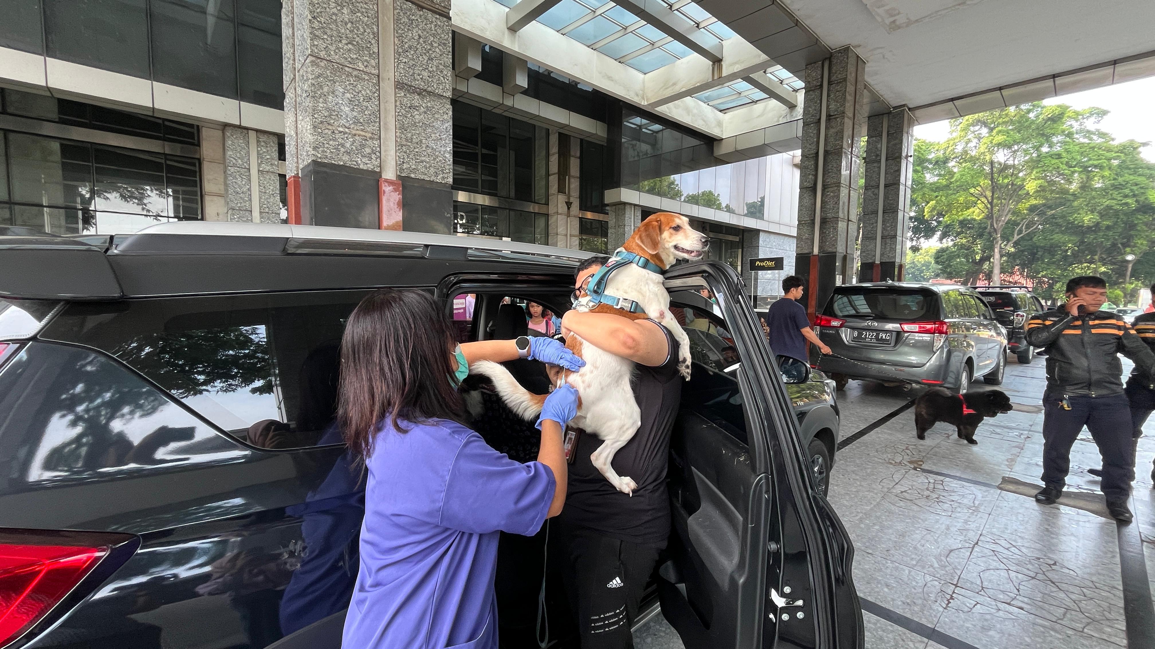 Jakarta Timur menggelar drive thru vaksinasi hewan penular rabies (HPR) dan sterilisasi kucing, di Gedung Serbaguna Blok C, Kantor Walikota Jakarta Timur, Sabtu (20/9/2025). Suku Dinas Ketahanan Pangan, Kelautan dan Perikanan (KPKP) membuka 400 kuota sterilisasi HPR hingga Sabtu siang.