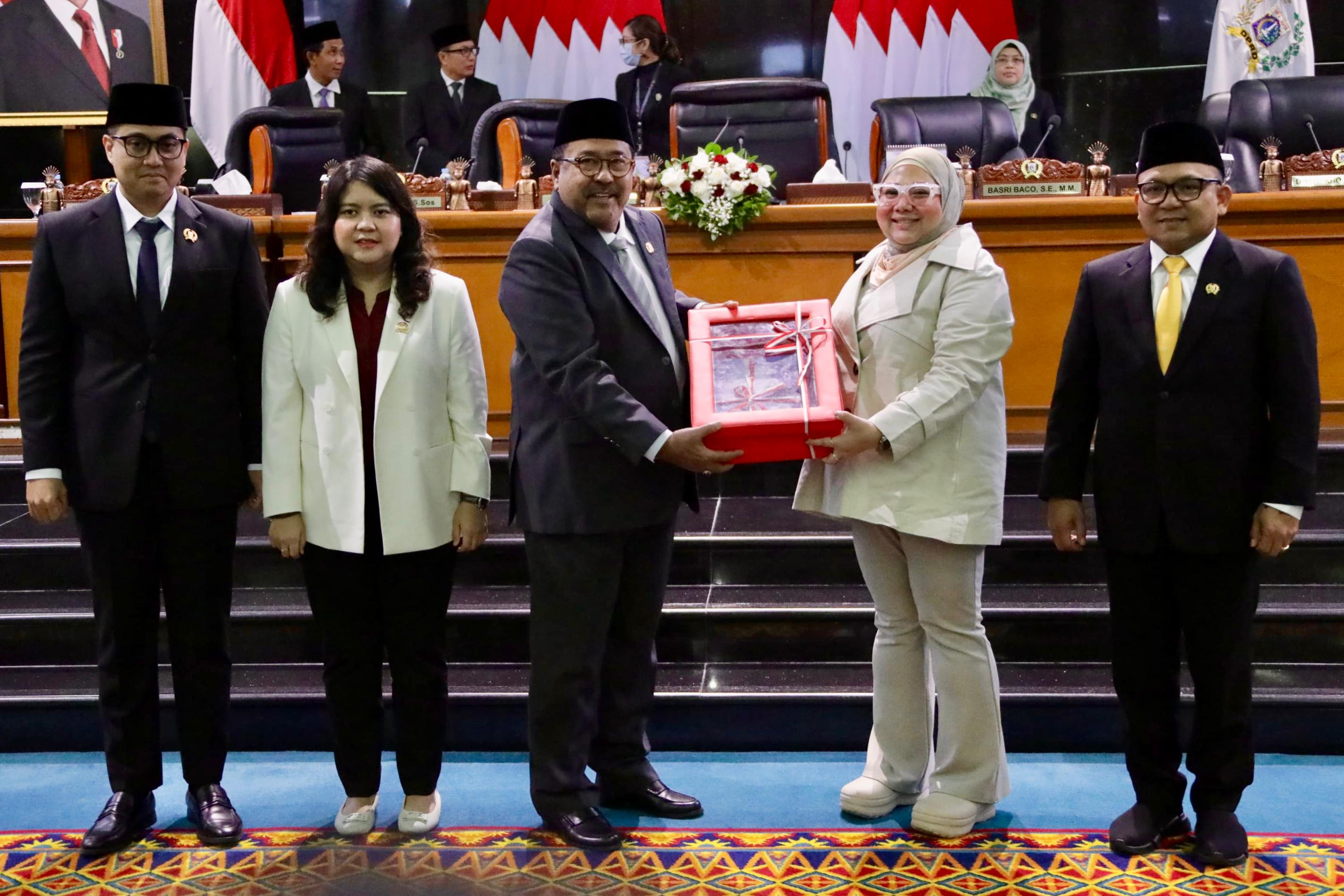 Wakil Gubernur DKI Jakarta, Rano Karno, menyampaikan tiga rancangan peraturan daerah (raperda) dalam Rapat Paripurna DPRD DKI Jakarta di Gedung DPRD, Jakarta Pusat, pada Jumat (23/5). Ketiga raperda tersebut mencakup Rencana Pembangunan Jangka Menengah Daerah (RPJMD) 2025–2029, Kawasan Tanpa Rokok, dan Penyelenggaraan Pendidikan.