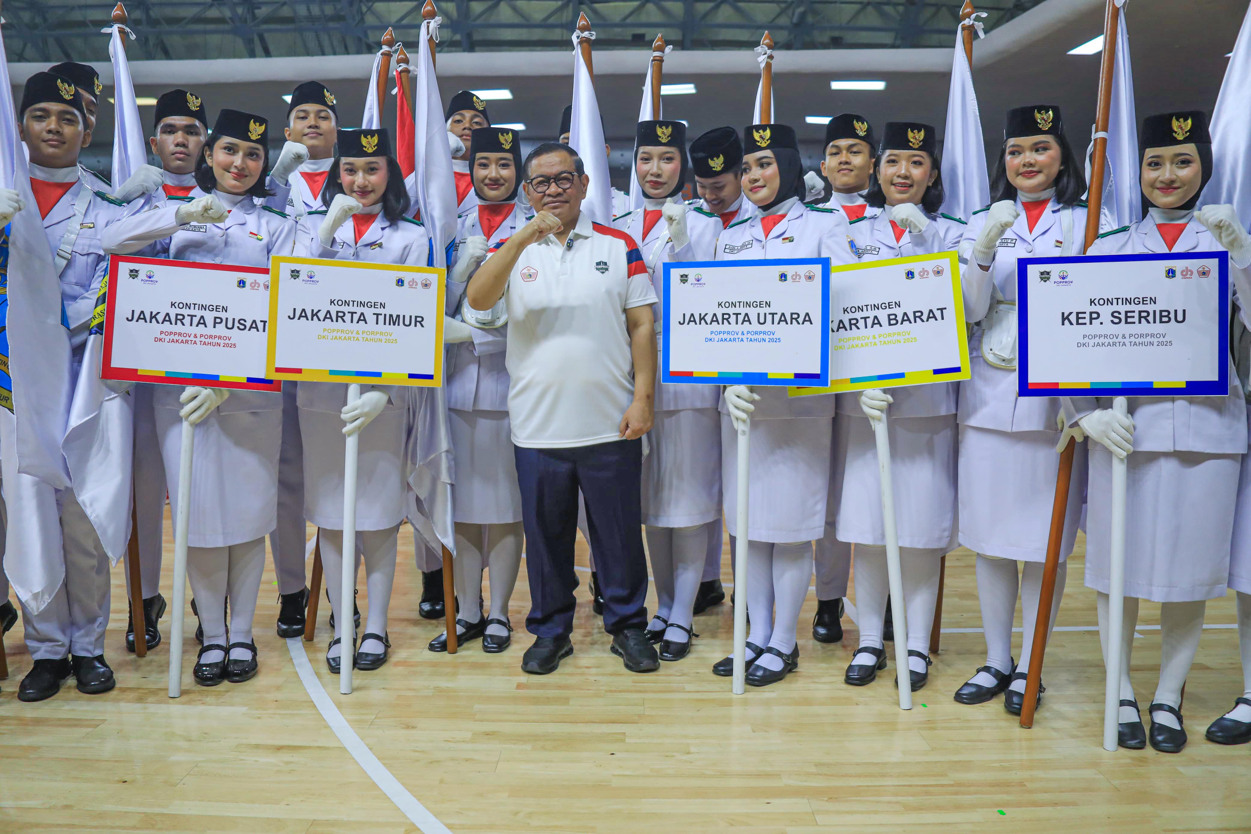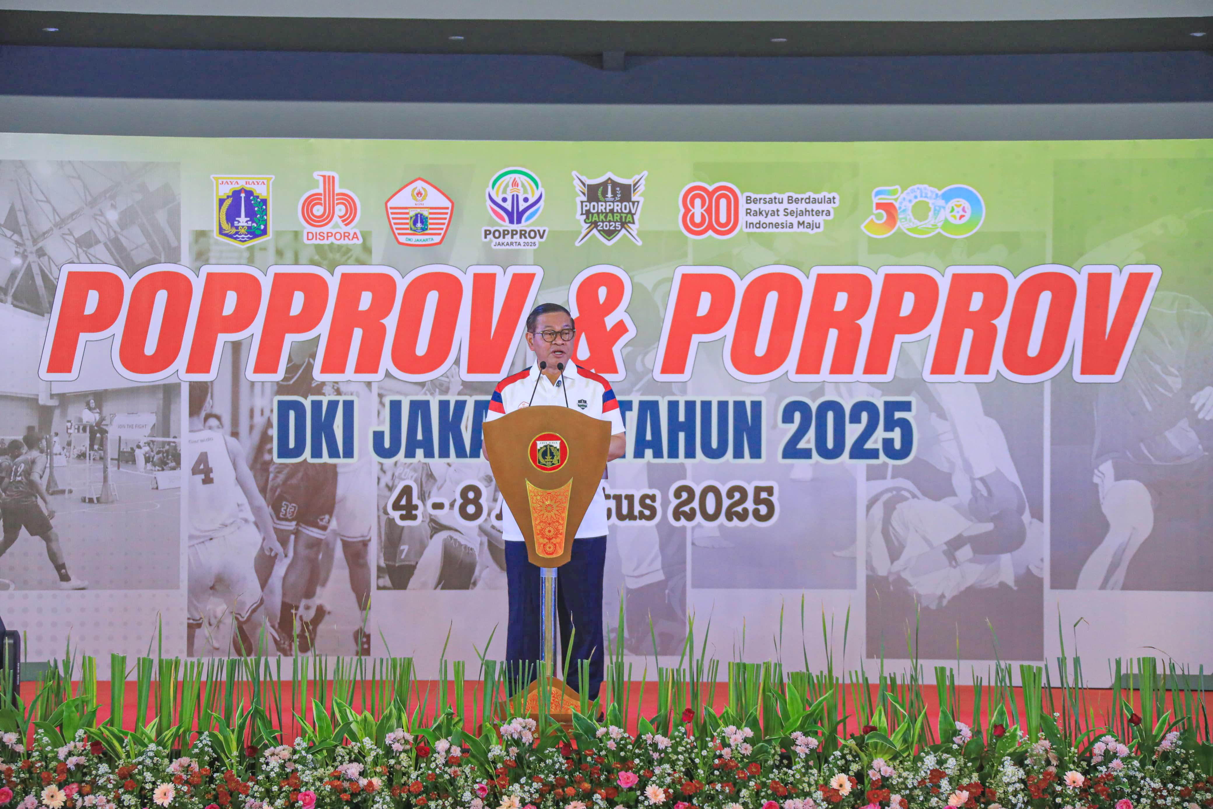 Gubernur DKI Jakarta, Pramono Anung, resmi membuka Pekan Olahraga Pelajar Provinsi (POPPROV) dan Pekan Olahraga Provinsi (PORPROV) DKI Jakarta 2025 di Gelanggang Mahasiswa Soemantri Brodjonegoro, pada Senin (4/8).