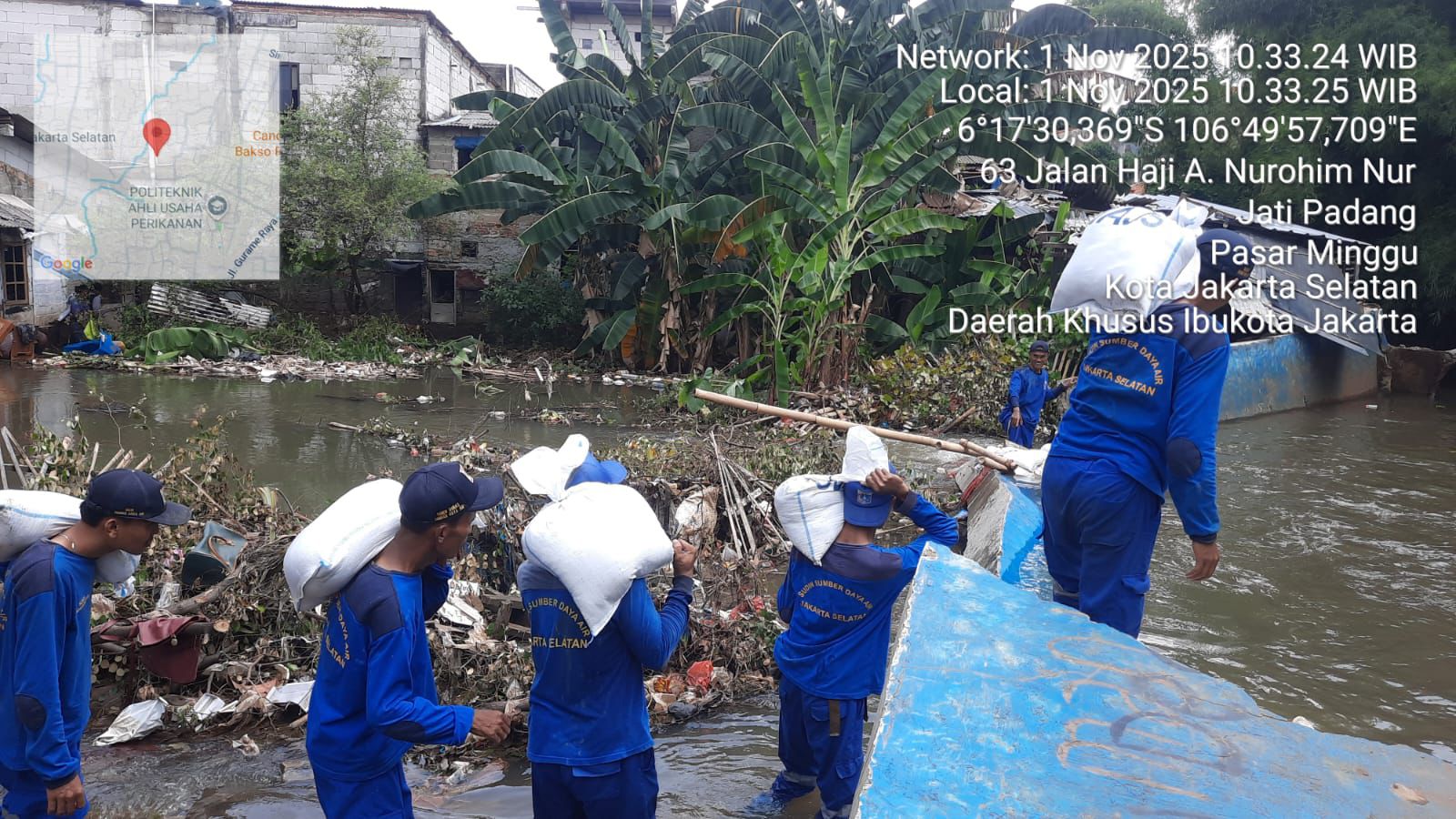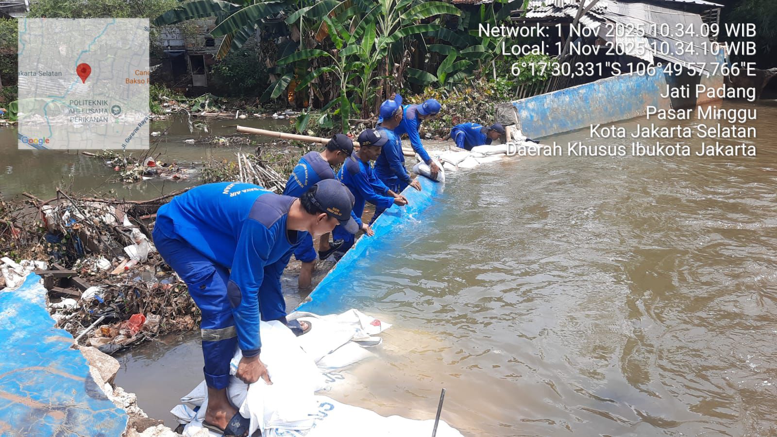 Sebagai tindak lanjut, Suku Dinas SDA Jakarta Selatan telah melakukan penanganan darurat dengan membangun tanggul sementara menggunakan karung berisi pasir untuk menahan limpasan air di lokasi-lokasi terdampak.